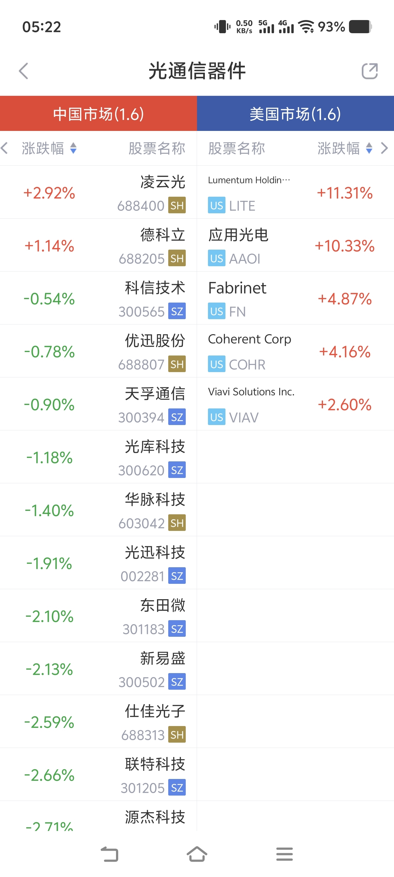 $蘅东光(SZ920045)$ 昨日美股光通信器件板块大涨6.65%,