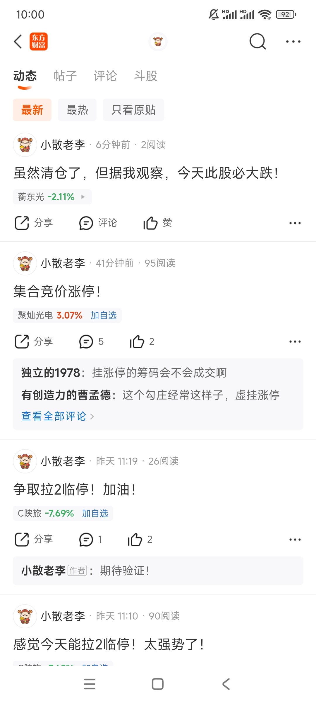 温馨提示: 1.根据《证券法》规定,禁止编造、传播虚假信息或者误导性信息,扰乱证券市场;2.用户在本社区发表的所有资料、言论等仅代表个人观点,与本网站立场无关,不对您构成任何投资建议。用户应基于自己的独立判断,自行决定证券投资并承担相应风险。《东方财富社区管理规定》