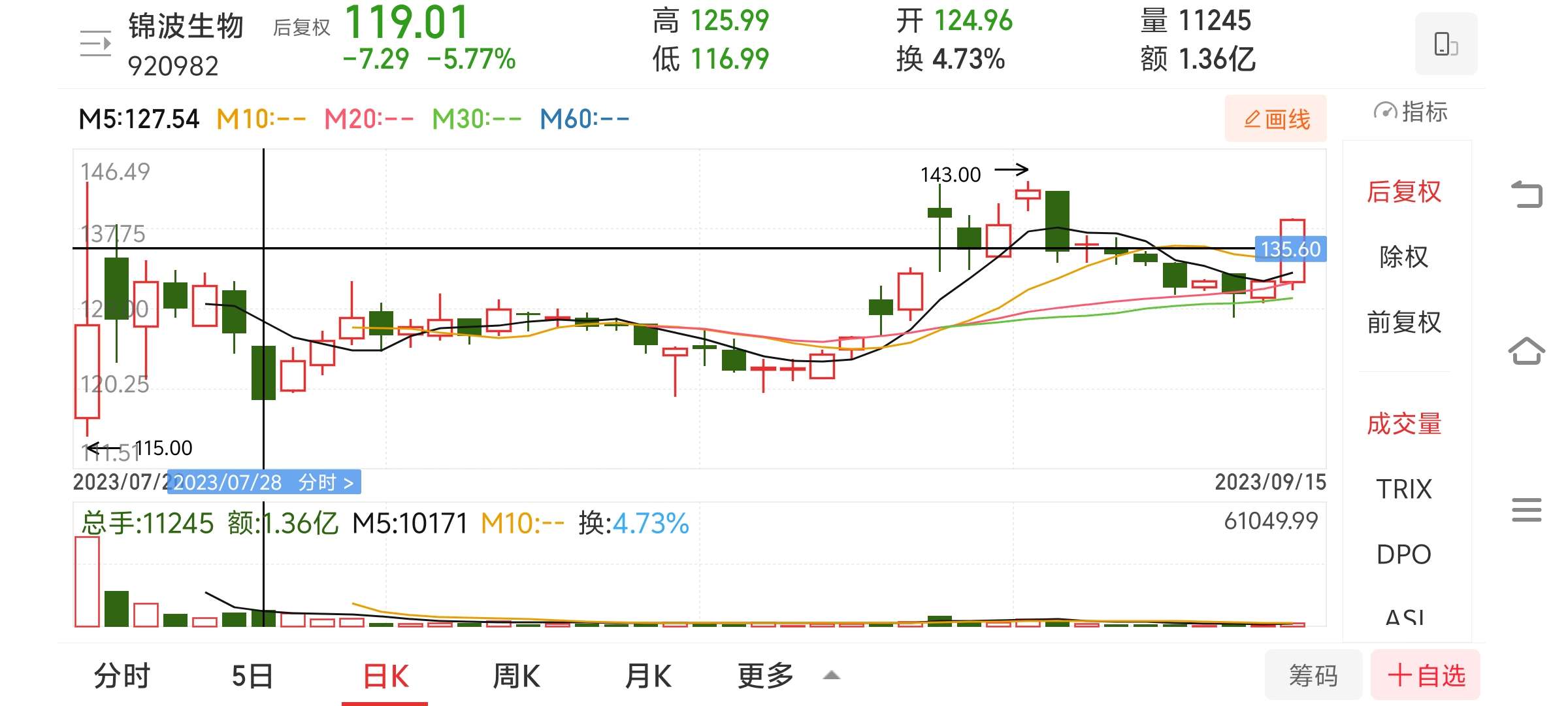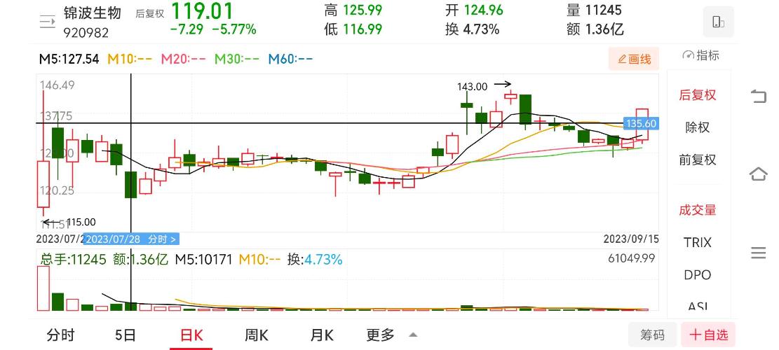 锦波生物上市第 7 天最低价接近上市首日开盘价蘅东光上市第 6 天最低价破了上市首日最低价