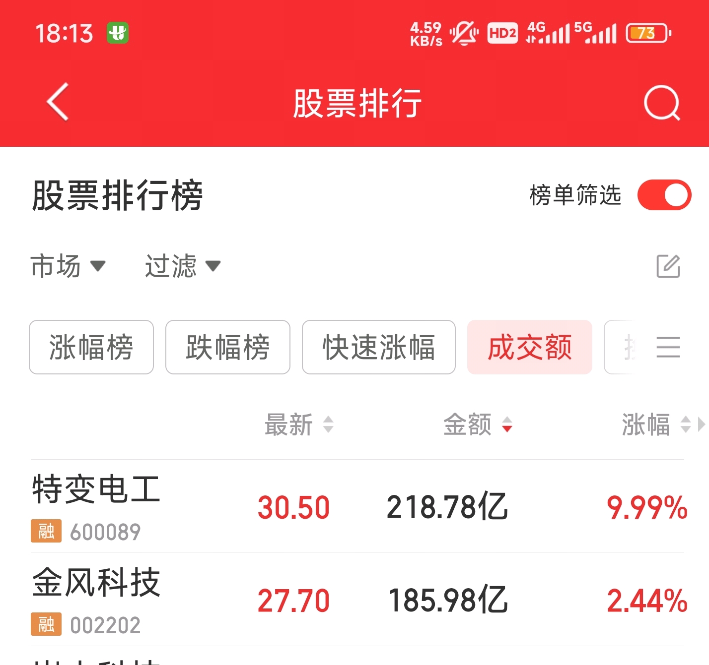 $亿能电力(SZ920046)$ $金风科技(SZ002202)$ $特变电工(SH600089)$ 风电龙头的金风科技成交市场第二185亿(第一特变电工200亿涨停)电力高压设备/风电设备