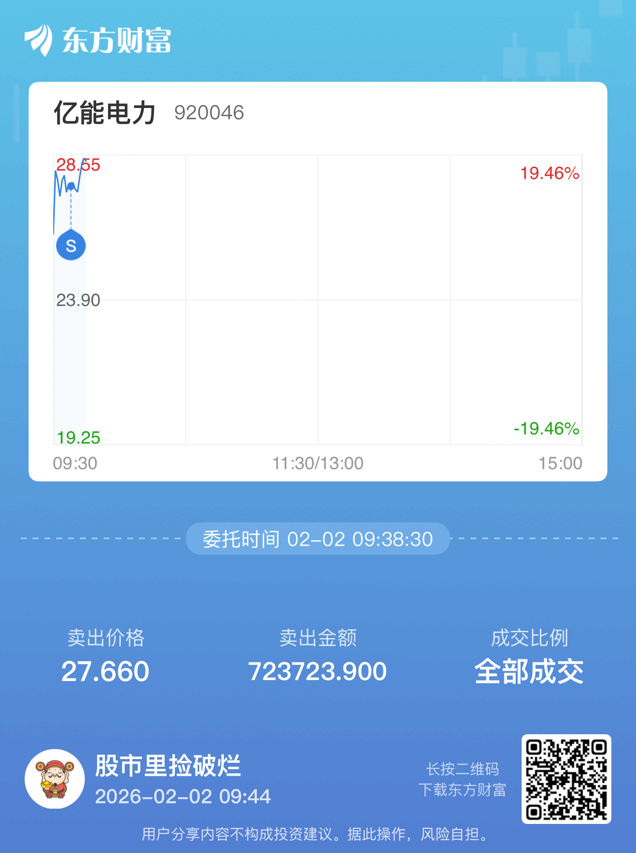 温馨提示: 1.根据《证券法》规定,禁止编造、传播虚假信息或者误导性信息,扰乱证券市场;2.用户在本社区发表的所有资料、言论等仅代表个人观点,与本网站立场无关,不对您构成任何投资建议。用户应基于自己的独立判断,自行决定证券投资并承担相应风险。《东方财富社区管理规定》