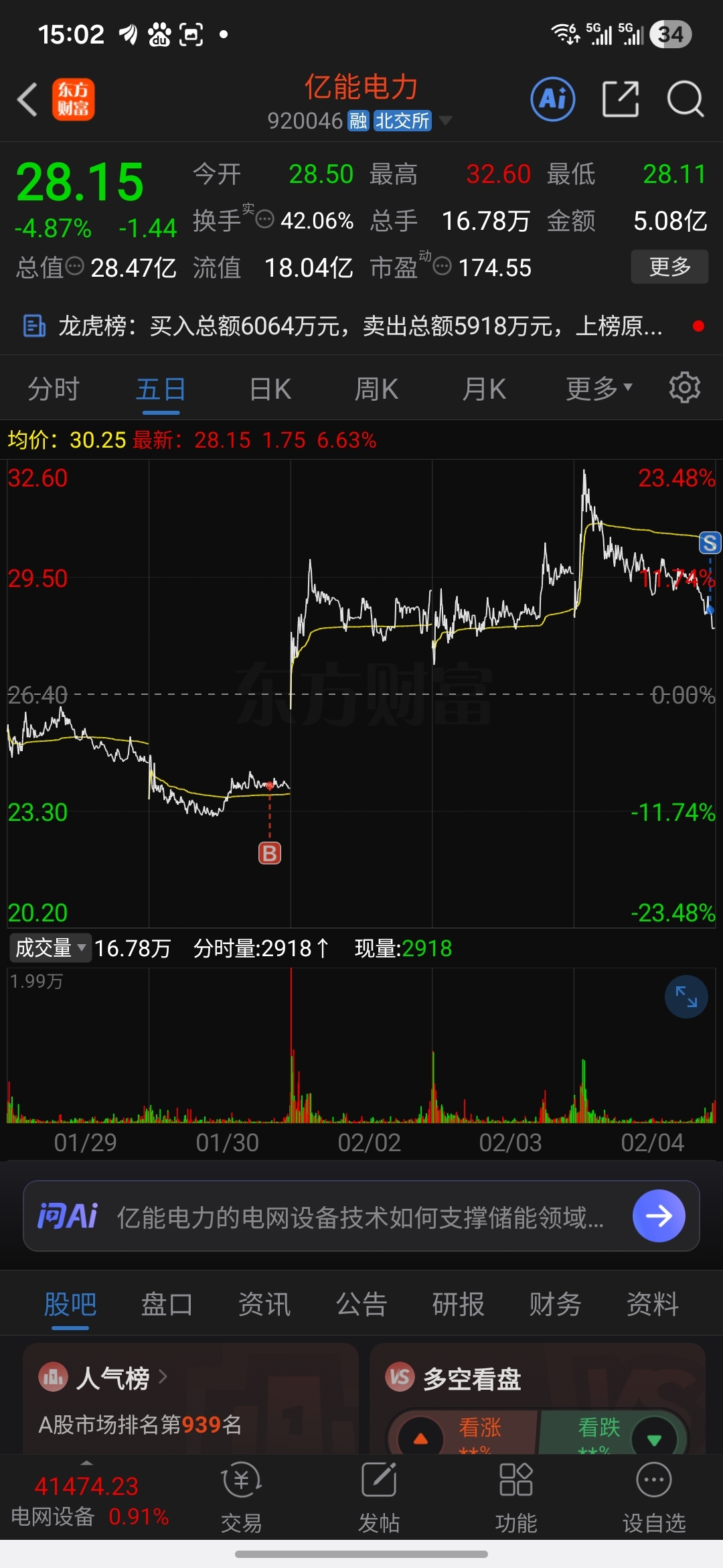 $亿能电力(SZ920046)$ 不应该杀这么很,抛弃你了!尾盘进艾能聚了!