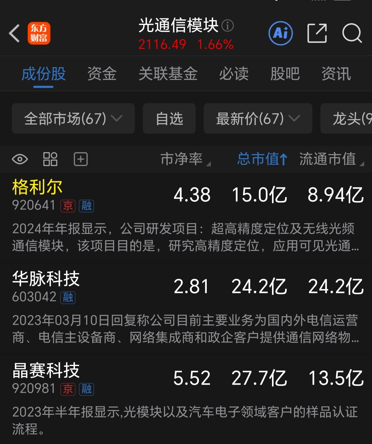 $诺思兰德(SZ920047)$ $华岭股份(SZ920139)$ $惠丰钻石(SZ920725)$ 格利尔新增算力概念,光通信模块,固态变压器,总市值才15亿,从业绩,营收,概念对比,比他们强多了,然而市值比他们小那么多,极度缩量,五天均线有反包节奏