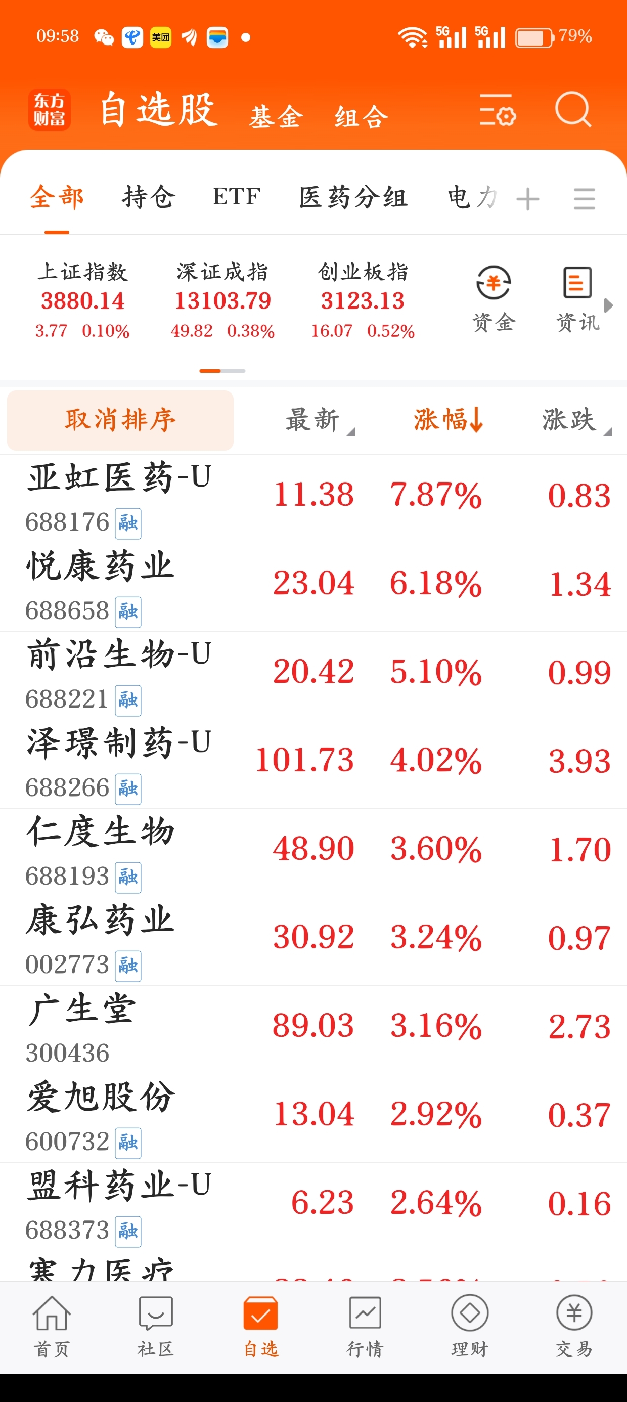 $诺思兰德(SZ920047)$ 今天自选股排前面的全是创新药,等风来