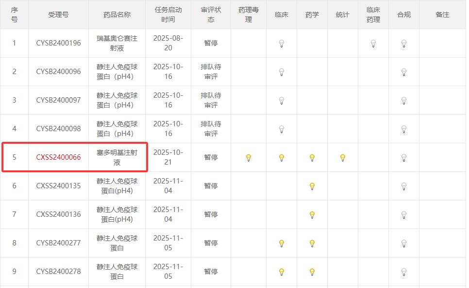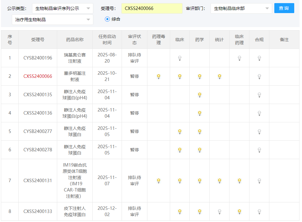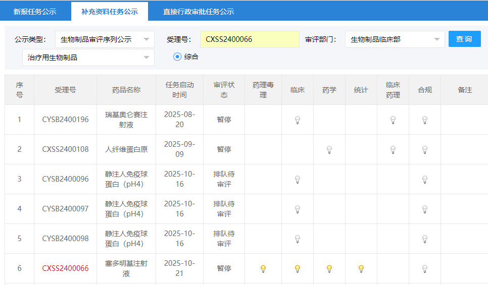 排第一的瑞基奥仑赛注射液由暂停转为排队了
