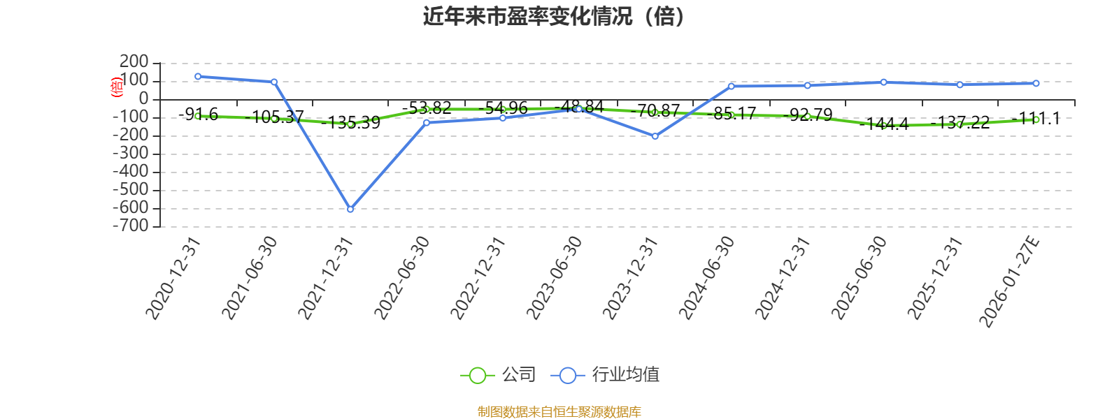 中证智能财讯诺思兰德(920047)1月27日晚间披露2025年度业绩预告,预计2025年归母净利润亏损4700万元至6600万元,上年同期亏损4518.07万元。以最新收盘价计算,市净率(LF)约20.69倍,市销率(TTM)约86.79倍。