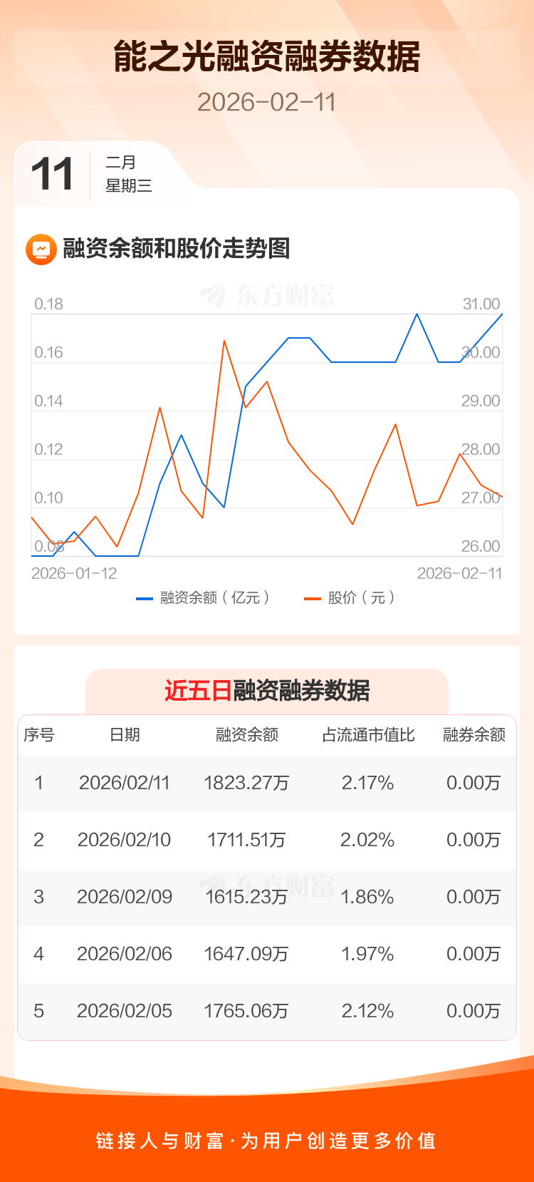 交易所最新数据显示,能之光于2026年2月11日获融资买入206.24万元,融资偿还94.48万元,当日融资净买入111.76万元。目前,该股融资余额1823.27万,占流通市值比例为2.17%。