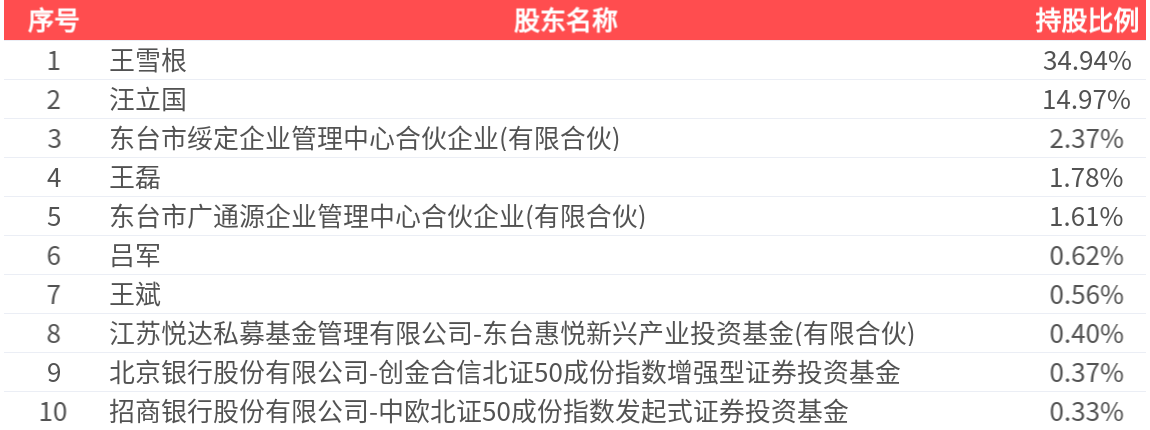 公司股东户数为9577户,前十大股东持股数量为8812.55万股,占总股本比例为57.96%,前十大股东持股情况如下: