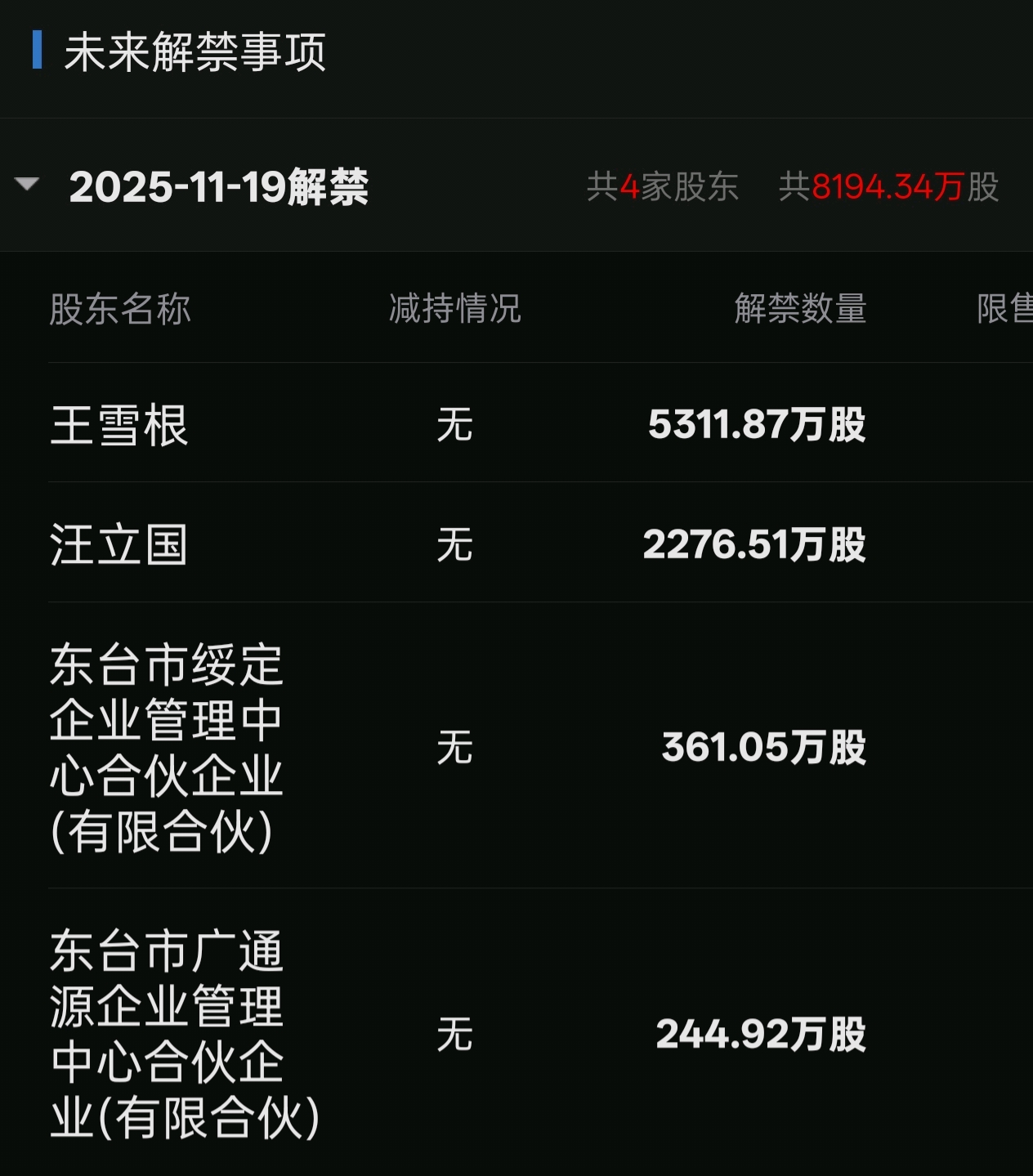 我好怕怕你解禁减持呀,哈哈哈哈哈,可我更害怕你减持以后丧失绝对控股权,50%都没达到呢,你这个价位减持个鬼