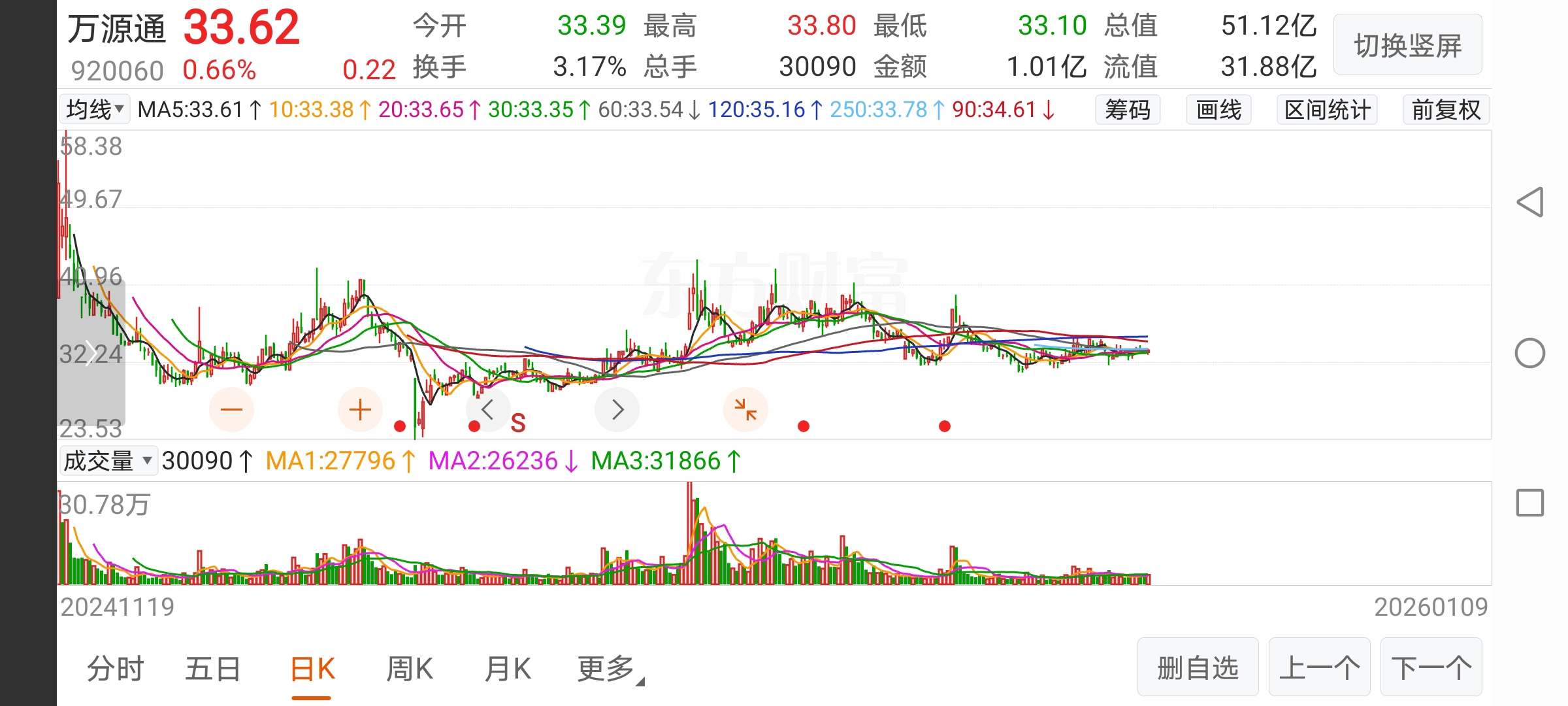 $万源通(SZ920060)$ 从未炒作过,看这K线感觉在酿坛着一波行情