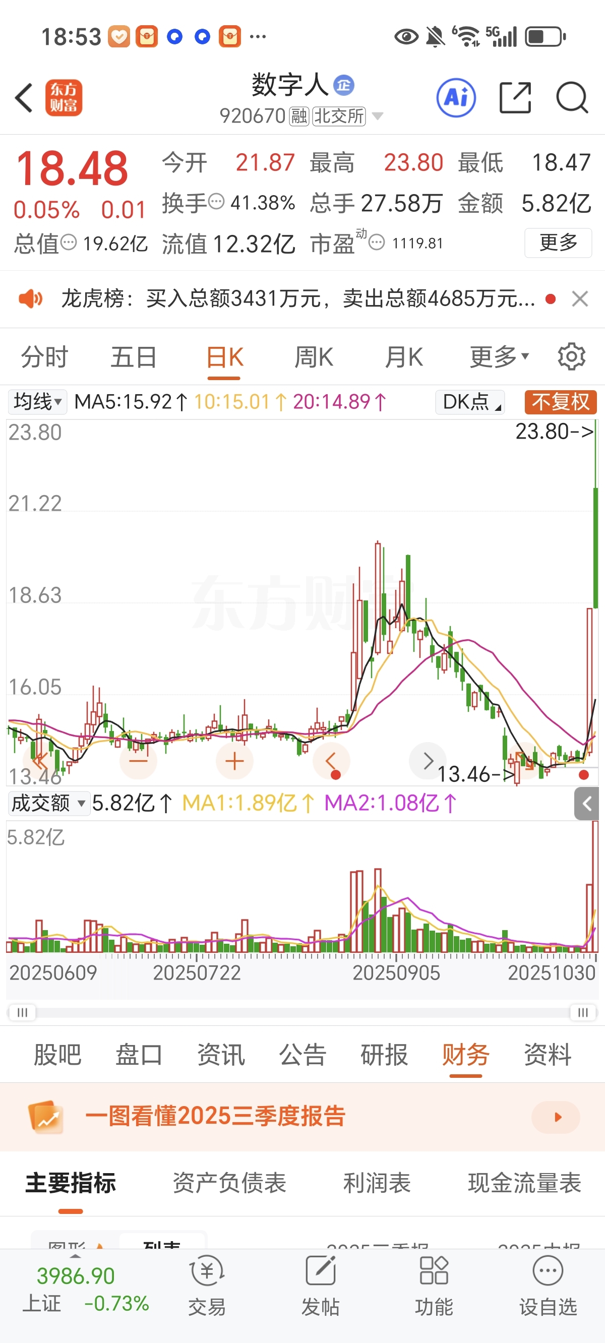 玩北证,谁看你业绩?看数字人这么差的业绩,不影响大涨