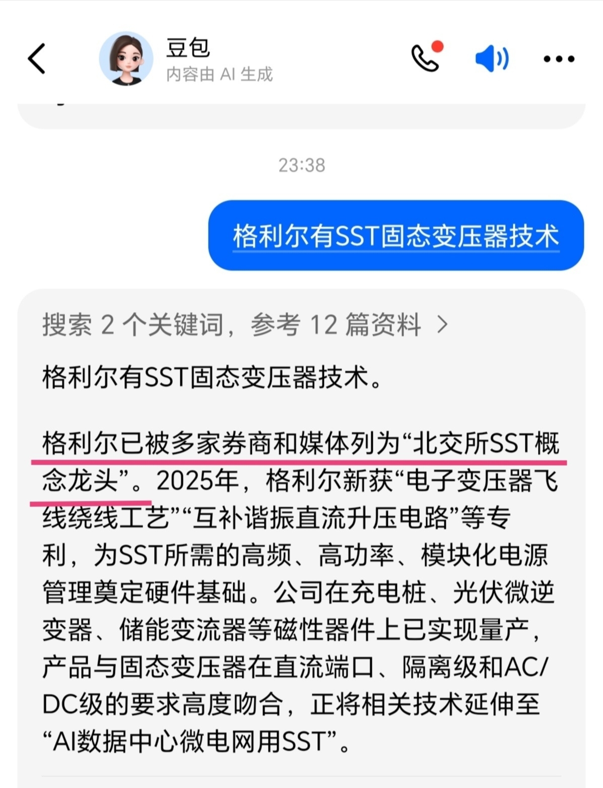 科润智控股价大涨市值高达24亿多,里面主力太好了。格利尔已被多家券商和媒体列为“北交所SST概念龙头”。2025年,格利尔新获“电子变压器飞线绕线工艺”“互补谐振直流升压电路”等专利,为SST所需的高频、高功率、模块化电源管理奠定硬件基础。