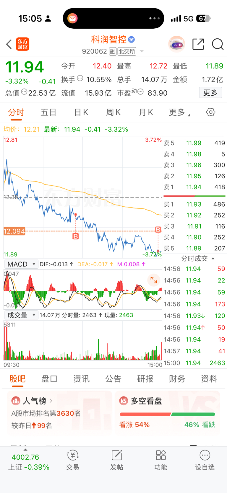 $科润智控(SZ920062)$ 第一次搞了50K走了,这是第二次……