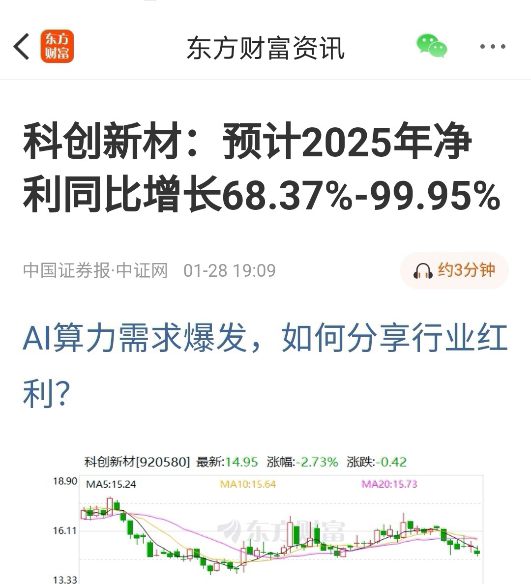 科润智控市值高达21亿多,本来我觉得市值不大,可是我看到科创新材业绩大增,总市值才12亿,第三代半导体,锂电池,硅能源概念的时候,我觉得更有性价比。
