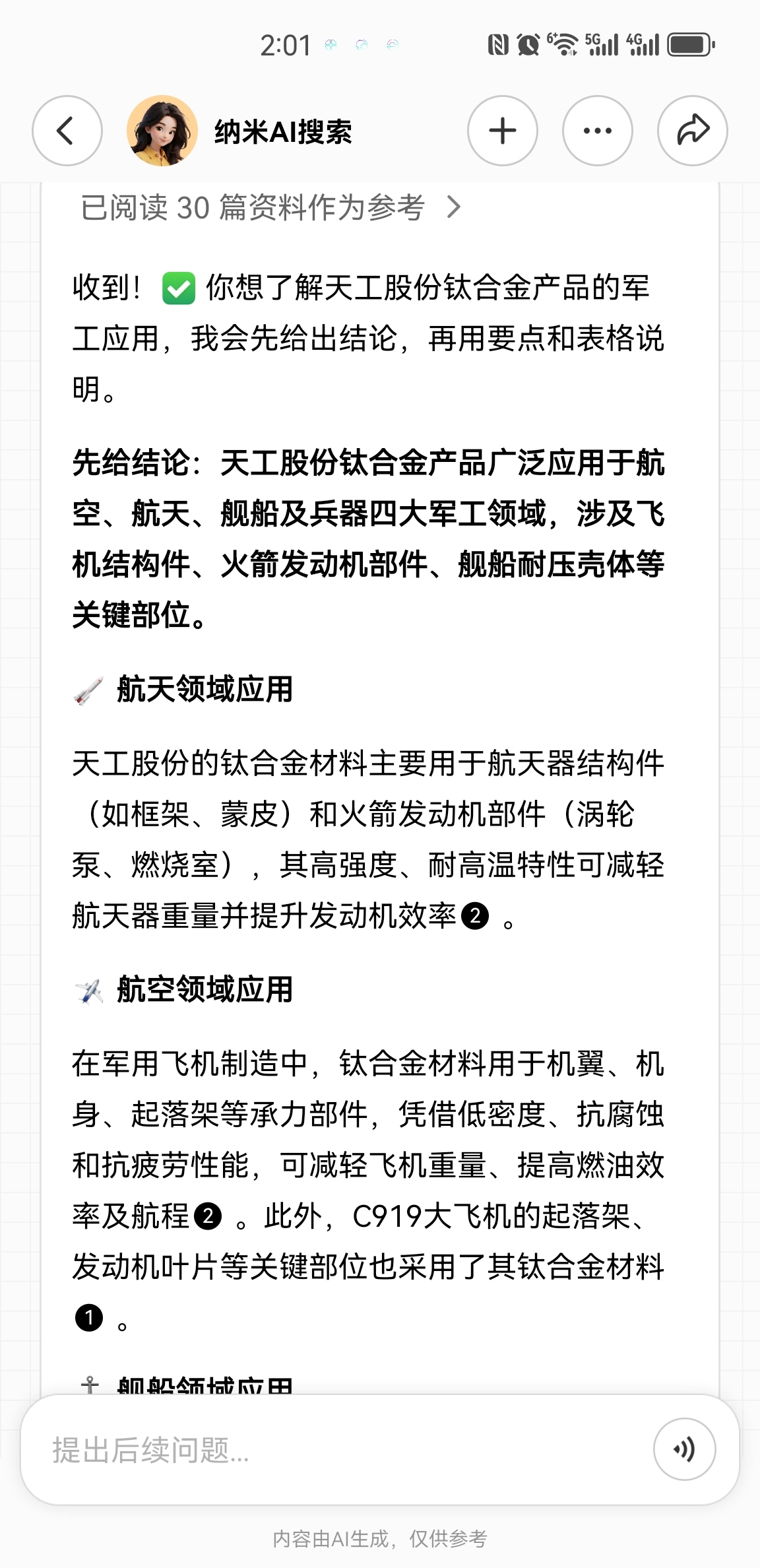 天工股份的钛合金产品在军工方面的运用。