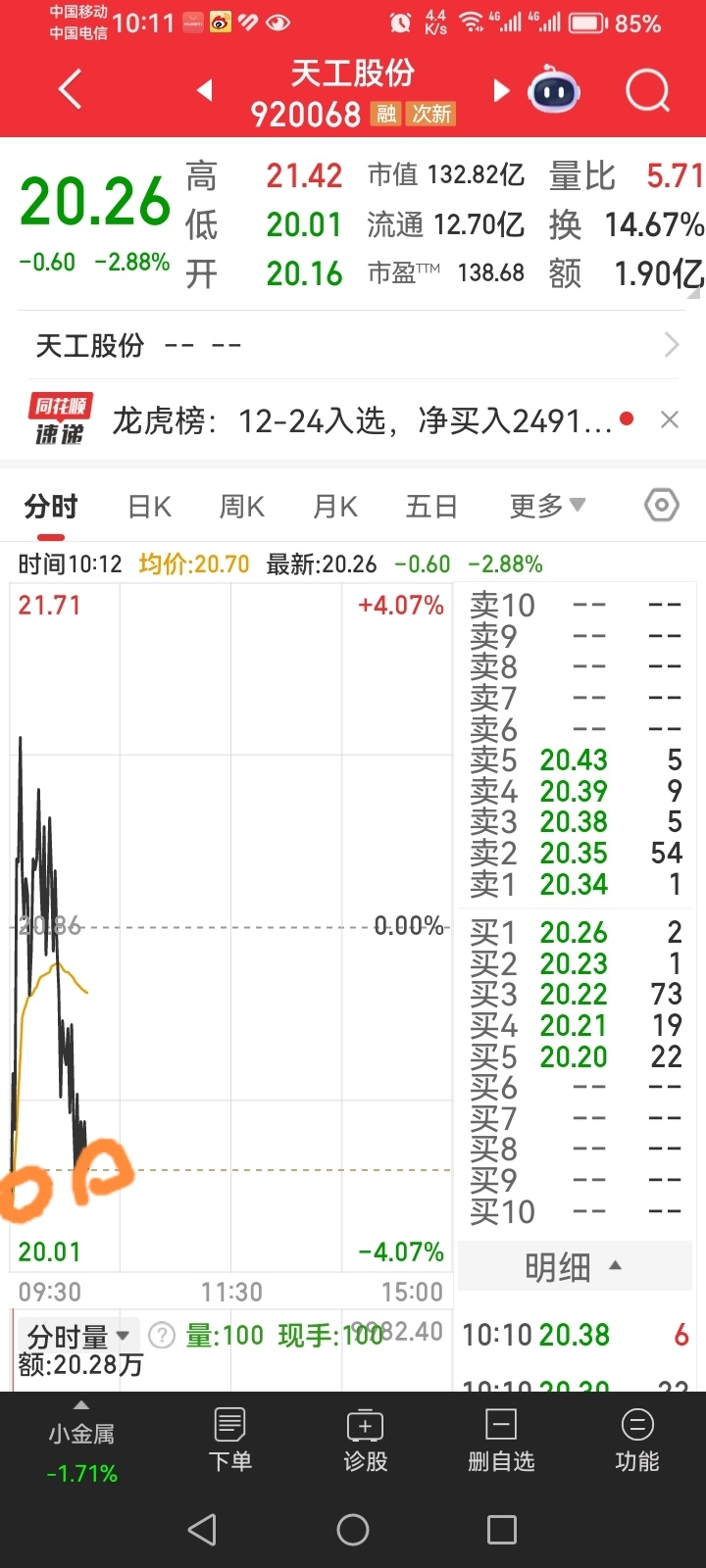 天工股份,低开+低开冲高回落,两次倒车接人机会。