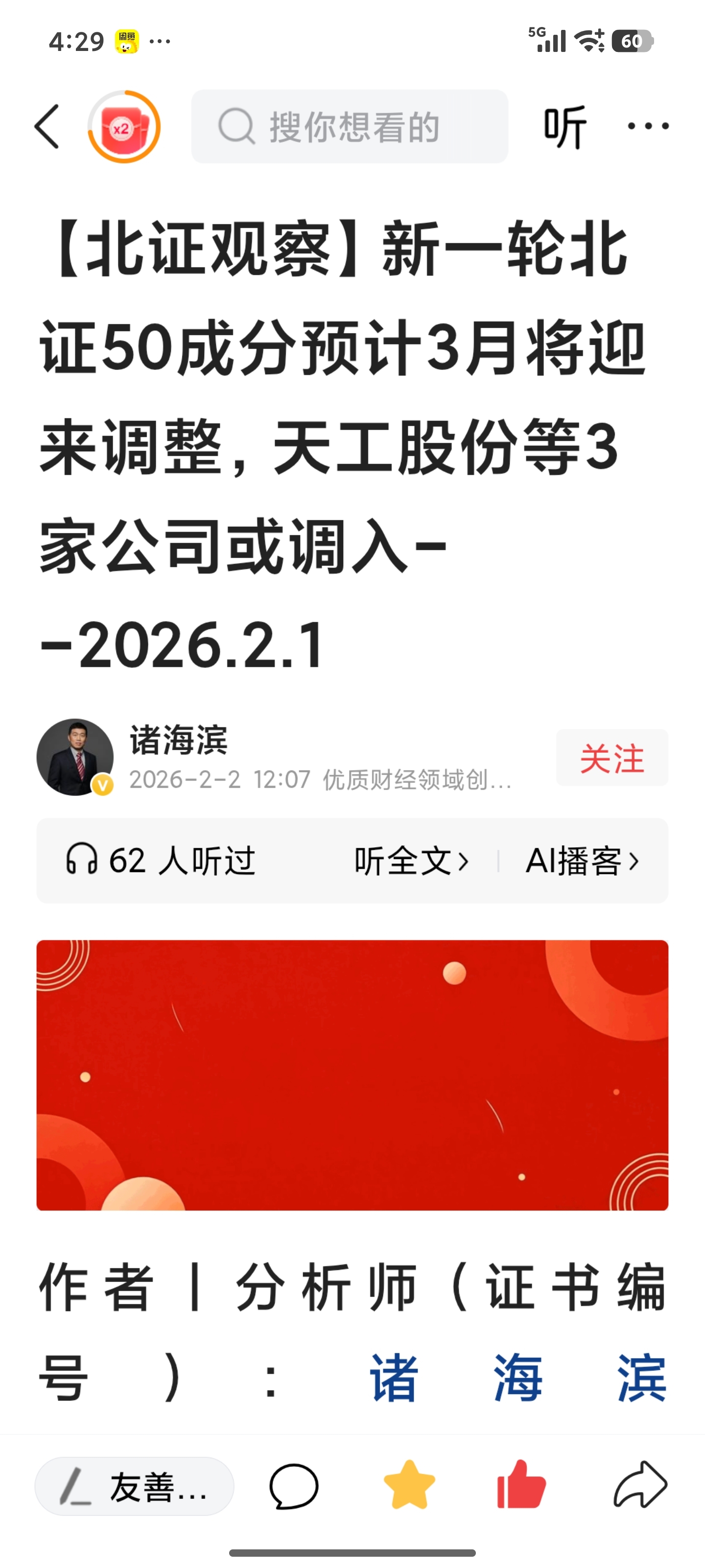$天工股份(SZ920068)$ 应该在2月底公布,3月中旬正式调入北证50