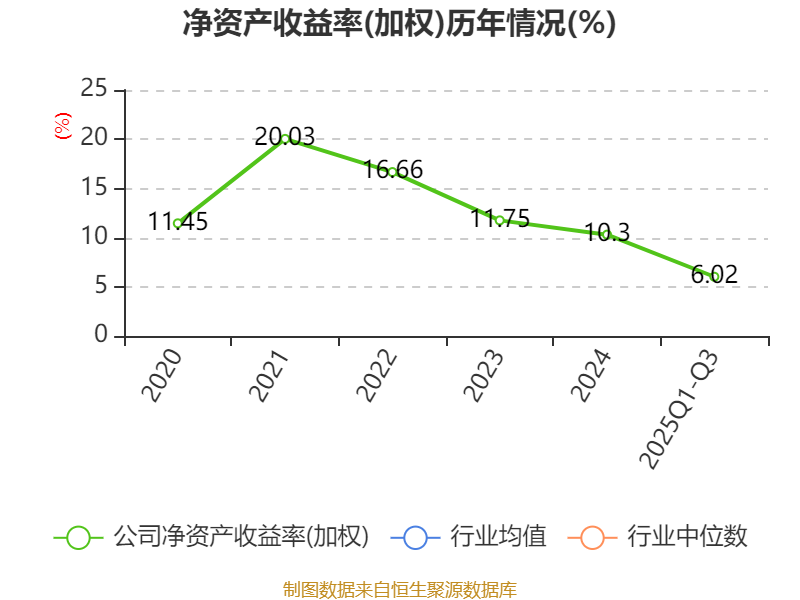 盈利能力方面, 2025年前三季度公司加权平均净资产收益率为6.02%,同比下降3.67个百分点。公司2025年前三季度投入资本回报率为5.45%,较上年同期下降3.11个百分点。