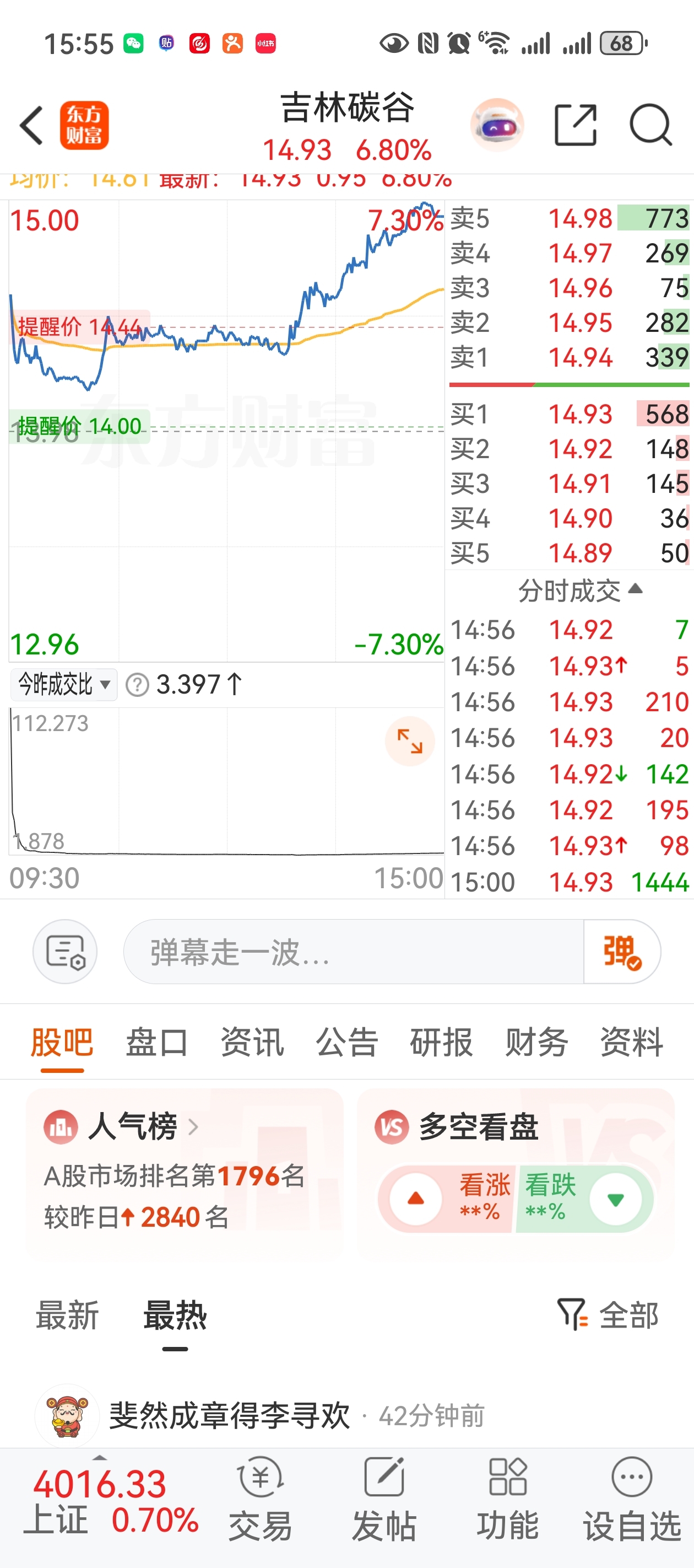 $吉林碳谷(SZ920077)$ 这个收盘单子不好1444