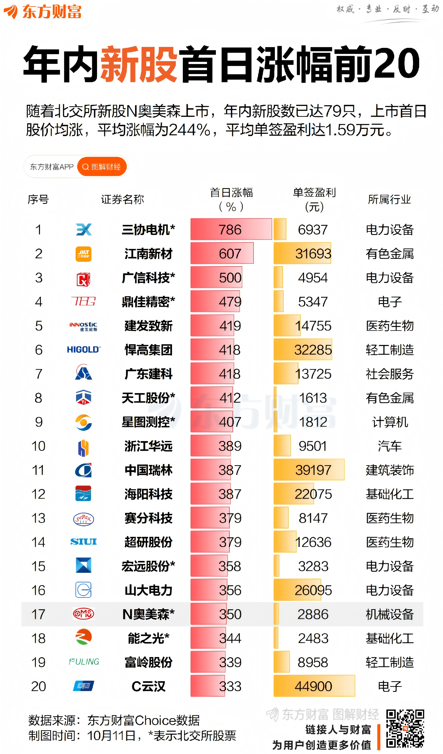 首日0破发!年内新股达79只 平均单签盈利近1.6万