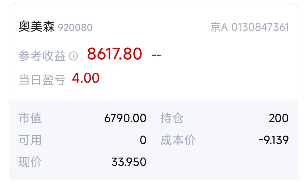 $奥美森(SZ920080)$ 今天居然赚钱了