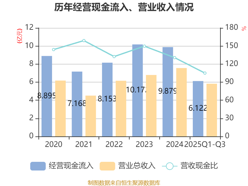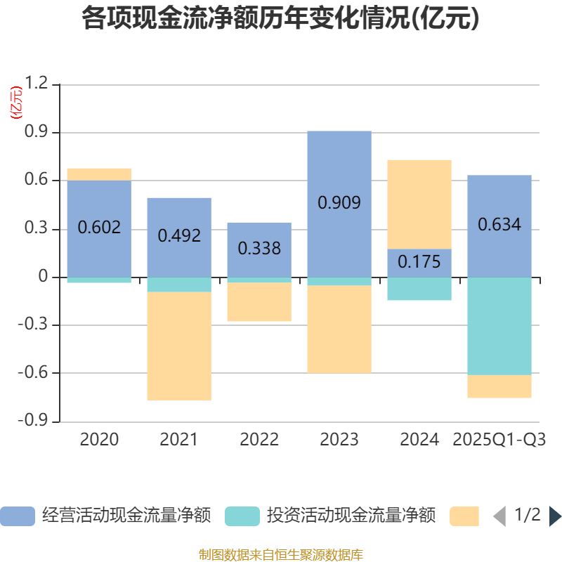 2025年前三季度,公司经营活动现金流净额为6335.66万元,同比增长172.57%;筹资活动现金流净额-1424.67万元,同比增加3041.86万元;投资活动现金流净额-6112.48万元,上年同期为-888.92万元。