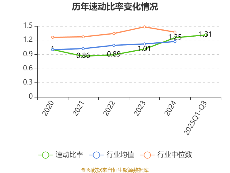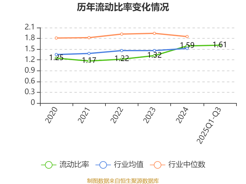 2025年前三季度,公司流动比率为1.61,速动比率为1.31。