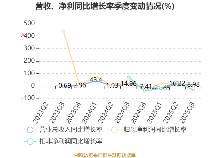 负债重大变化方面,截至2025年三季度末,公司应付票据及应付账款较上年末减少10.33%,占公司总资产比重下降5.1个百分点;短期借款较上年末增加57.37%,占公司总资产比重上升1.45个百分点;合同负债较上年末增加47.57%,占公司总资产比重上升1.02个百分点;其他流动负债较上年末增加52.7%,占公司总资产比重上升0.95个百分点。