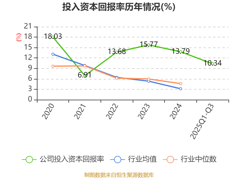 盈利能力方面, 2025年前三季度公司加权平均净资产收益率为10.97%,同比下降3.18个百分点。公司2025年前三季度投入资本回报率为10.34%,较上年同期下降1.49个百分点。