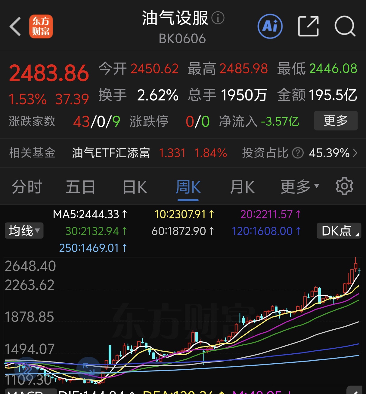 真不知道你跟油气设服这个板块有什么关系,整个板块都涨了几十周了