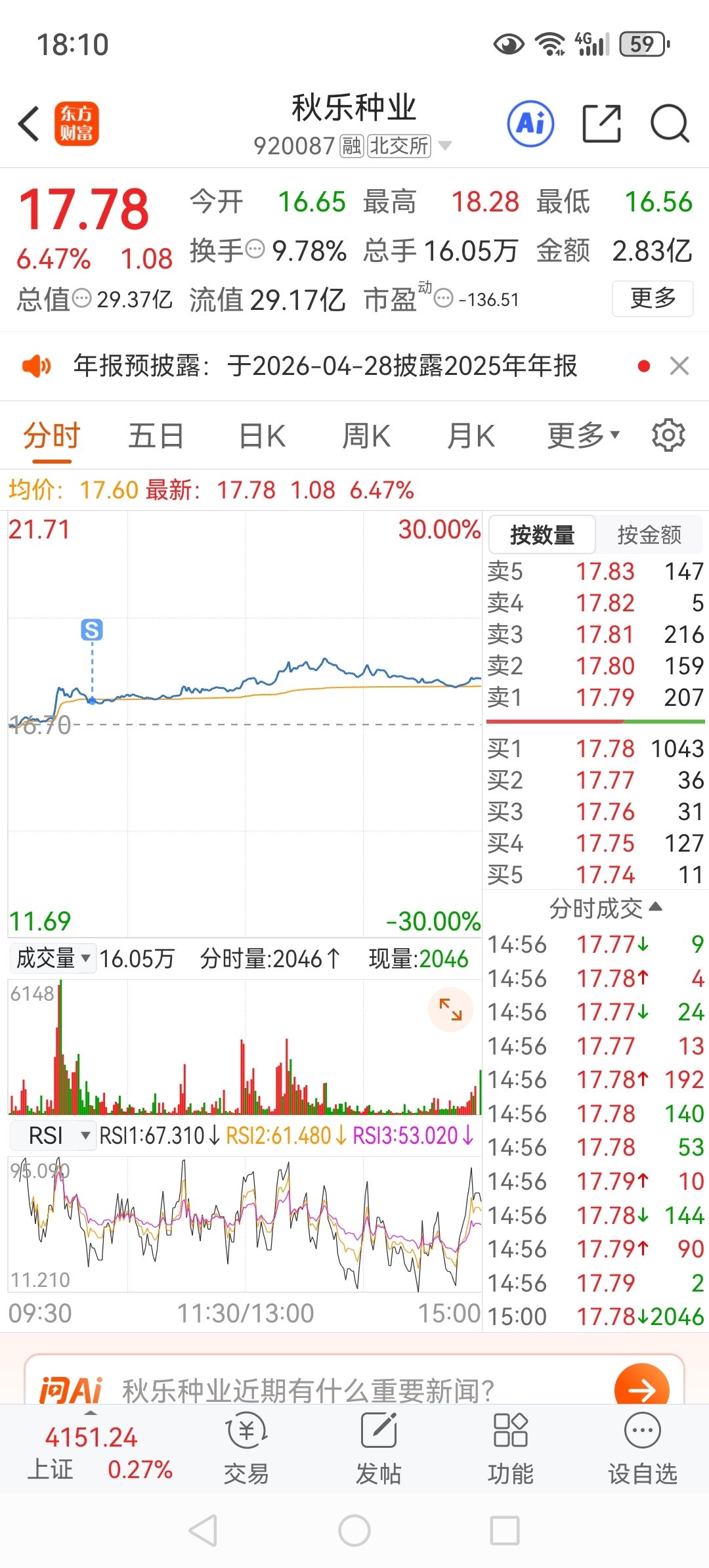 $秋乐种业(SZ920087)$ 忙中就会出错,炒股还是要静静心心的喝喝茶、看看盘。