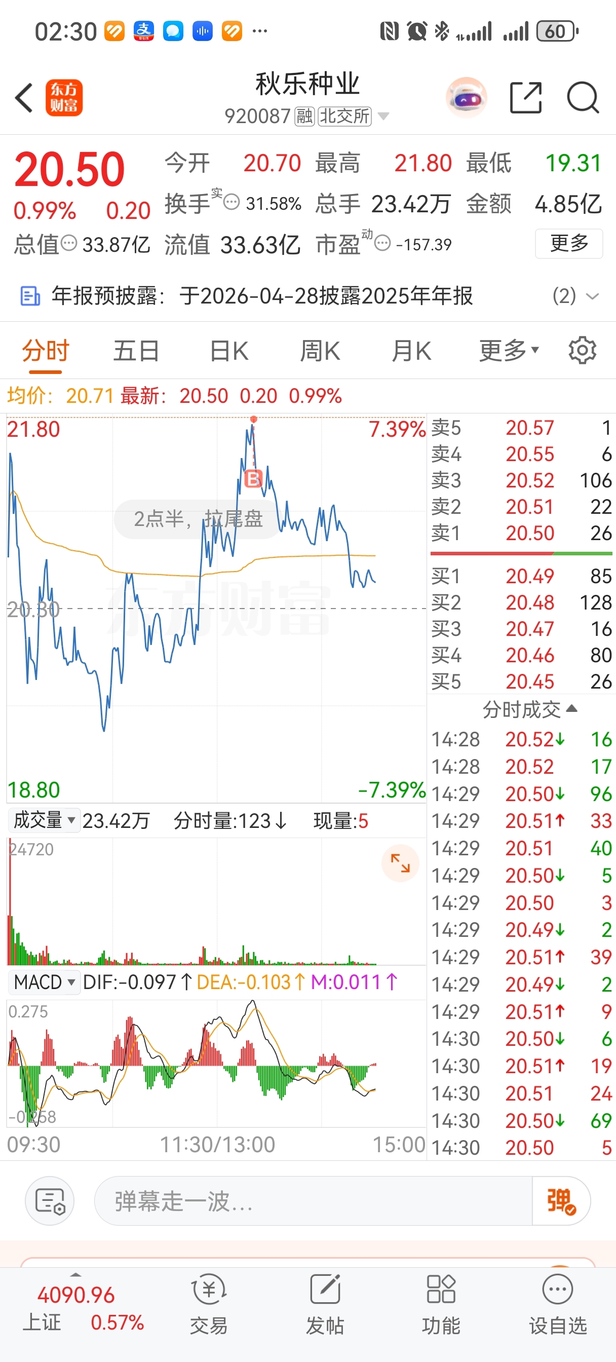 $秋乐种业(SZ920087)$ 都是我的错,买崩了