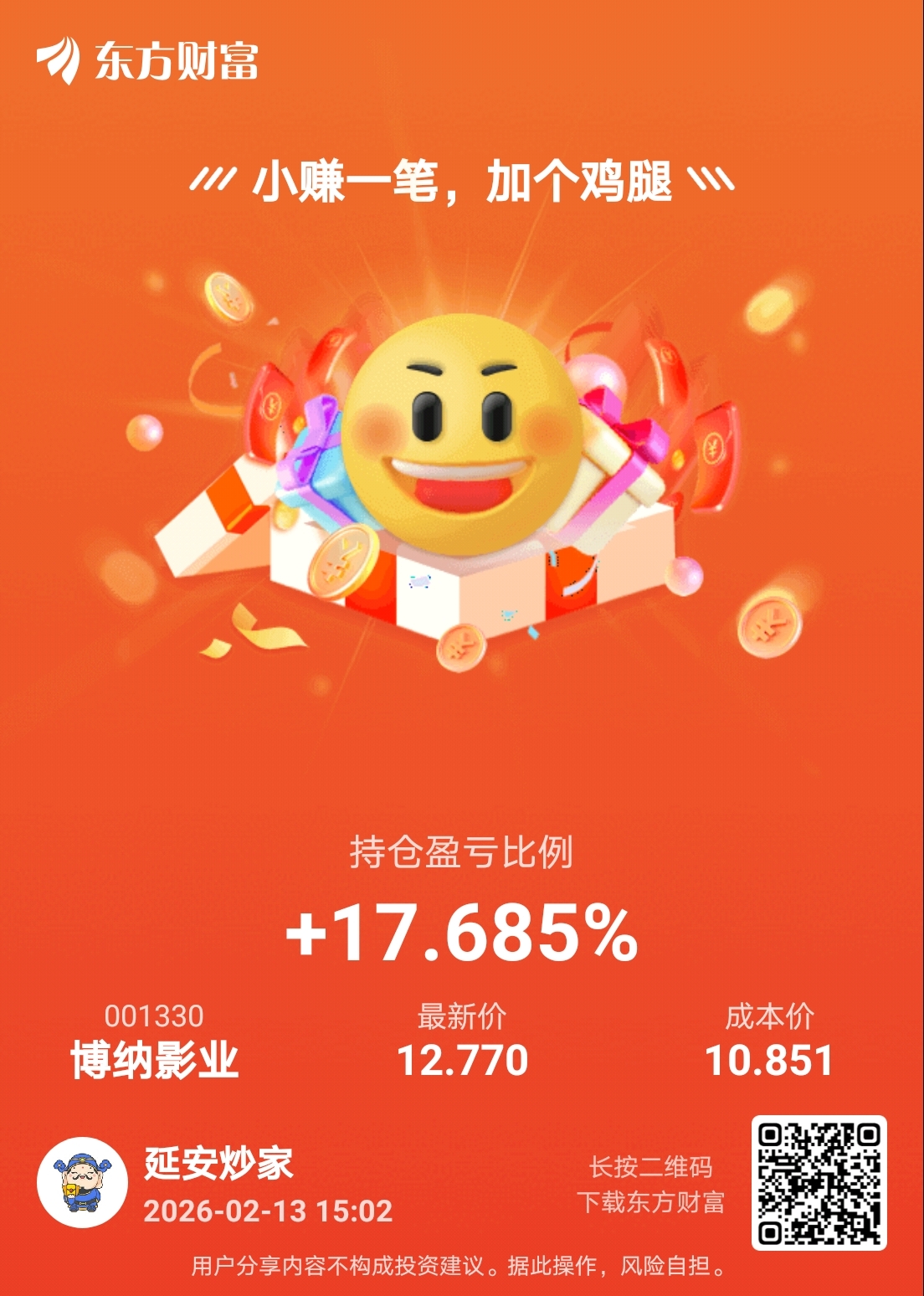 温馨提示: 1.根据《证券法》规定,禁止编造、传播虚假信息或者误导性信息,扰乱证券市场;2.用户在本社区发表的所有资料、言论等仅代表个人观点,与本网站立场无关,不对您构成任何投资建议。用户应基于自己的独立判断,自行决定证券投资并承担相应风险。《东方财富社区管理规定》