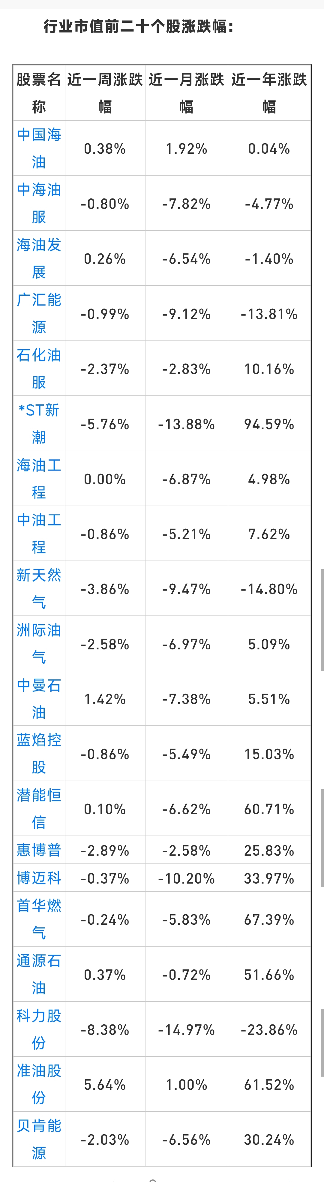 油服板块,科力以年跌幅-23%熊居榜首。月跌幅-15%依然占据熊大位置!