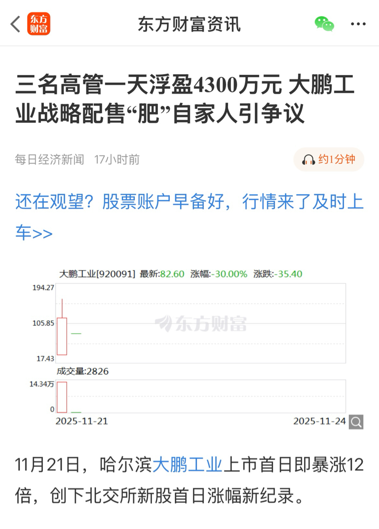 $大鹏工业(SZ920091)$ 高管从容配售 ,散黄不配配售