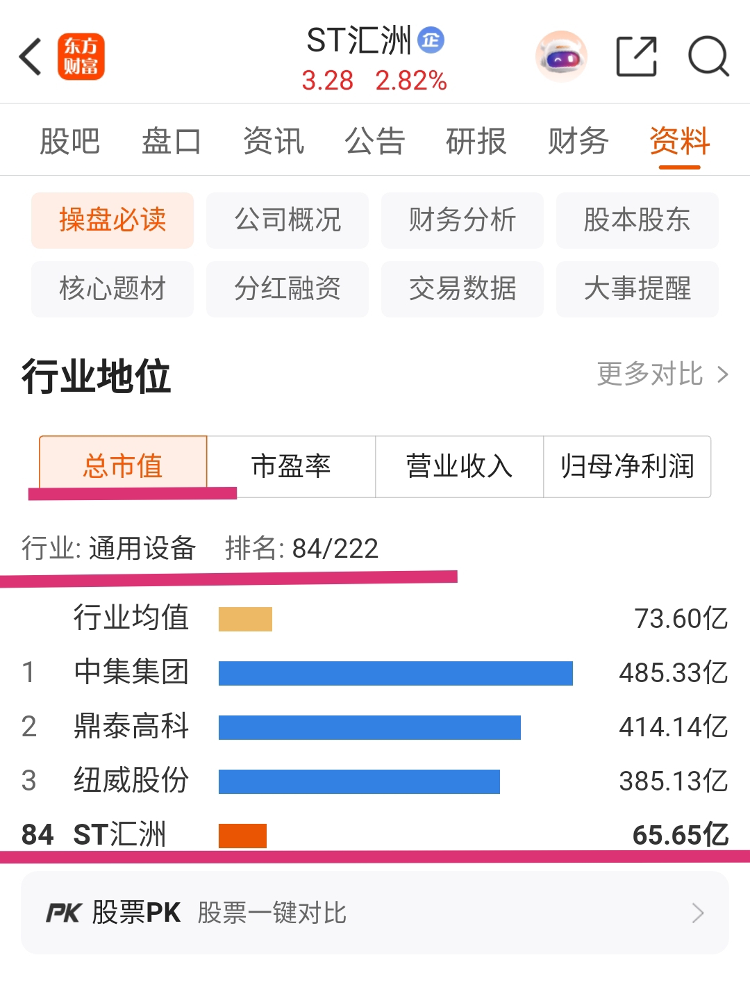 2025年三季报净利润8486.71万元,行业排位为84/222,2025年12月1日总市值排在行业84位的ST汇洲(002122.SZ)总市值65.65亿元。