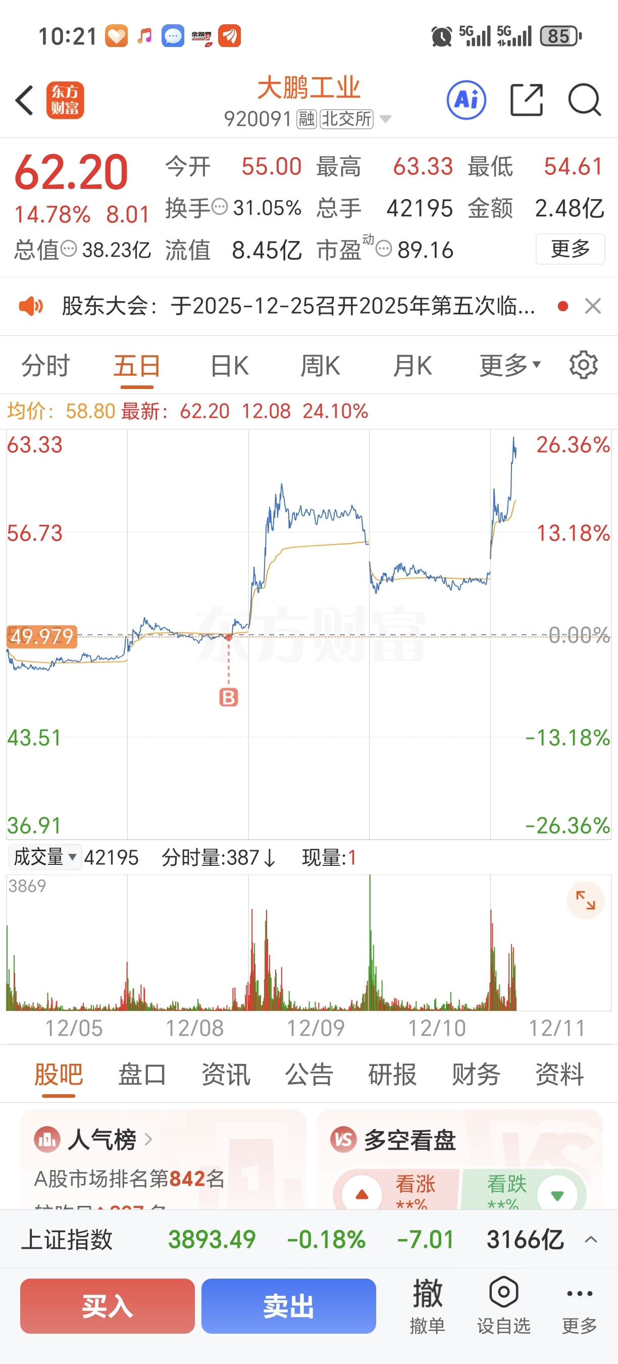 $大鹏工业(SZ920091)$ 一点运气,运气一点。