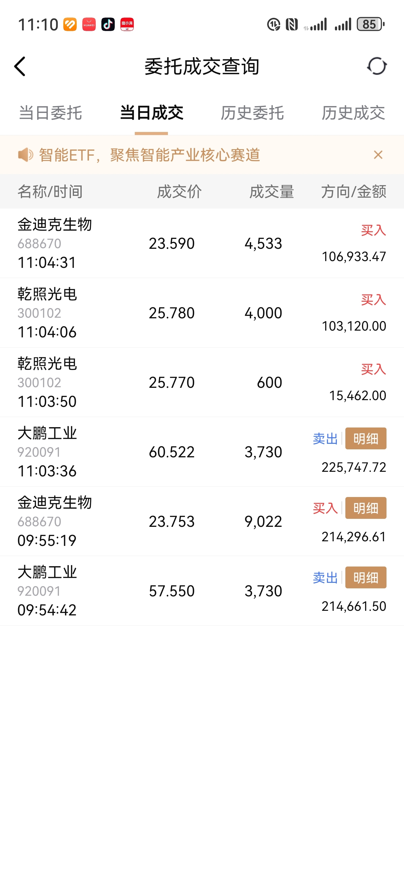 $大鹏工业(SZ920091)$ 13个点附近全部清仓,太知足了