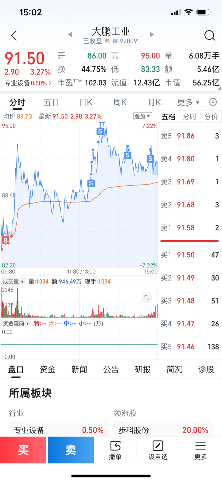 $大鹏工业(SZ920091)$ 股性活跃,适合作T。看看能不能过前高。