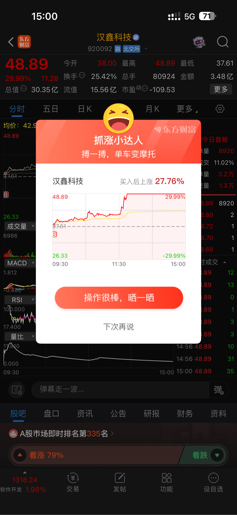 $汉鑫科技(SZ920092)$ 早上挂单比较低没成交,2个点挂进去了,明天再涨本月就休息了,到自己收益目标了。