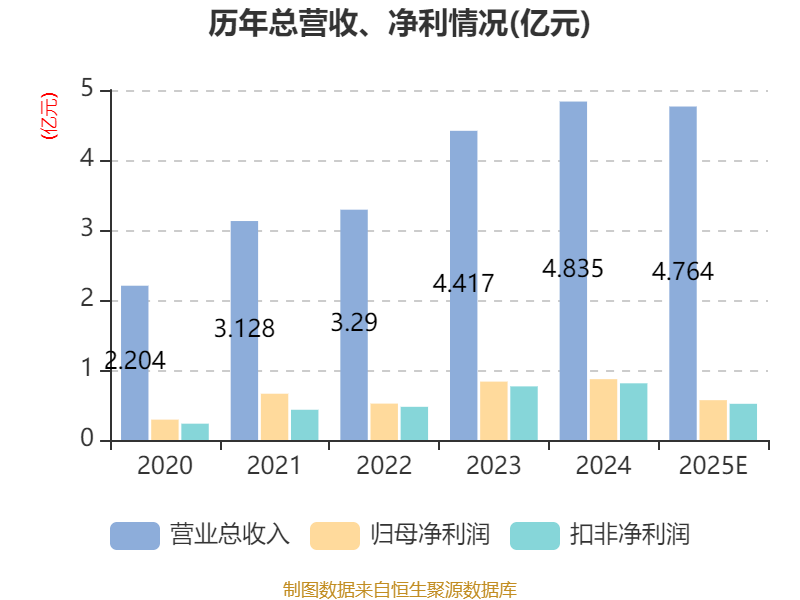 中证智能财讯科隆新材(920098)2月26日晚间披露2025年业绩快报,公司实现营业收入4.76亿元,同比下降1.46%;归母净利润5694.22万元,同比下降34.48%;扣非净利润5173.35万元,同比下降36.15%;基本每股收益0.7元,加权平均净资产收益率为6.18%。以2月26日收盘价计算,科隆新材目前市盈率(TTM)约为43.19倍,市净率(LF)约2.63倍,市销率(TTM)约5.05倍。