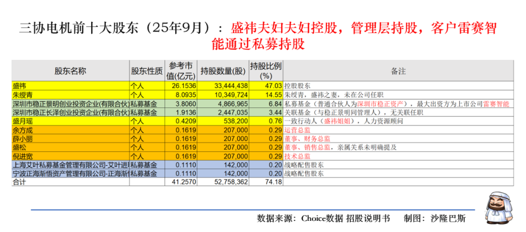 公司的第三大股份和第四大股东为,深圳市稳正景明创业投资企业(有限合伙)和深圳市稳正长泽创业投资企业(有限合伙),合计持股10.28%。其GP为深圳市稳正资产,最大出资方为上市公司雷赛智能,出资比例98.0392%。而雷赛智能2023年和2024年均为公司前五大客户。2022年8月,三协电机向稳正景明、长泽创投发行普通股530万股,发行价格为4.48元/股,募集资金2374.4万元,用于补充流动资金。现在看来是换一个20倍的生意啊。稳定资产在董事会中也有一个席位,委派王进为董事。