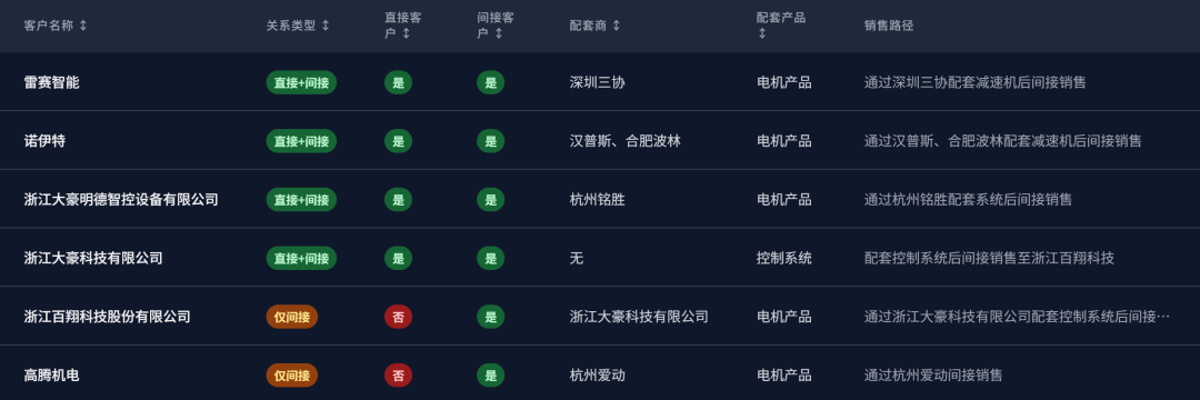 需要说明的是,公司的客户很多既是直接客户,也是供应商。雷赛智能、诺伊特、浙江大豪明德智控设备有限公司、浙江大豪科技有限公司、浙江百翔科技股份有限公司、高腾机电,既为公司的直接客户又是公司的间接客户。