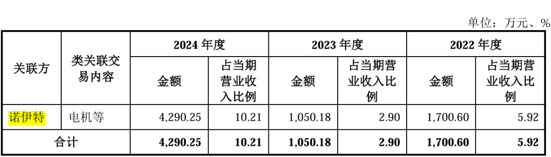 南京诺伊特机电设备有限公司、瑞胜智能传动有限公司为同一控制下的企业,合并披露为“诺伊特”。南京诺伊特在2024年销售额大幅增加。公司解释因其成功开拓了终端客户(如纳斯达克上市公司Inogen和NEXTRACKER)并通过诺伊特进行销售。