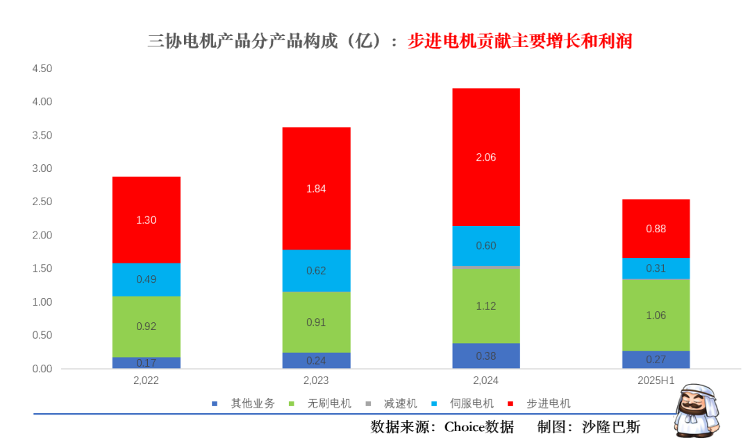 步进电机始终主导(45-51%),2024年收入2.06亿元(占比49%);