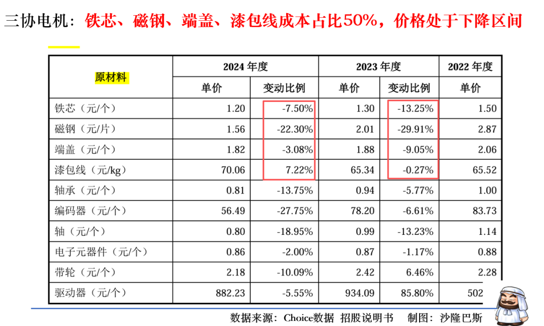 其中铁芯、磁钢、端盖、漆包线占原材料成本大致在50%左右。