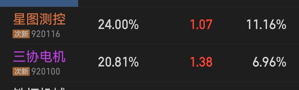 $三协电机(SZ920100)$ 估计又要上榜,北证大于20%换手就两只