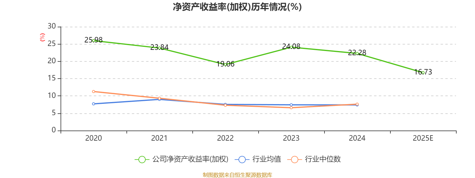 数据显示,2025年公司加权平均净资产收益率为16.73%,较上年同期下降5.55个百分点。