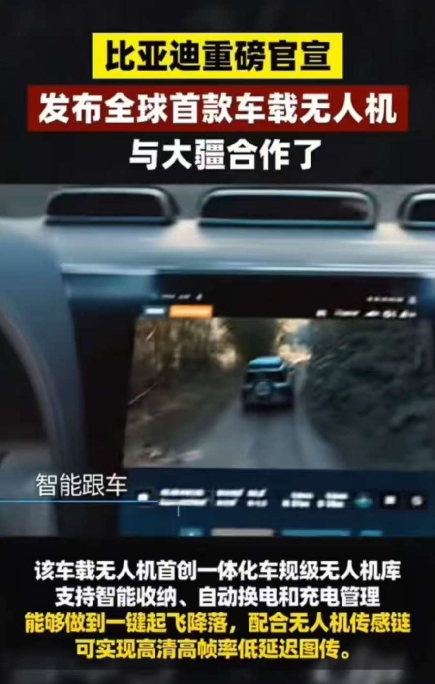 比亚迪3月2日与大疆创新共同发布比亚迪智能车载无人机系统,首款搭载这车型是仰望U8越野玩家版。