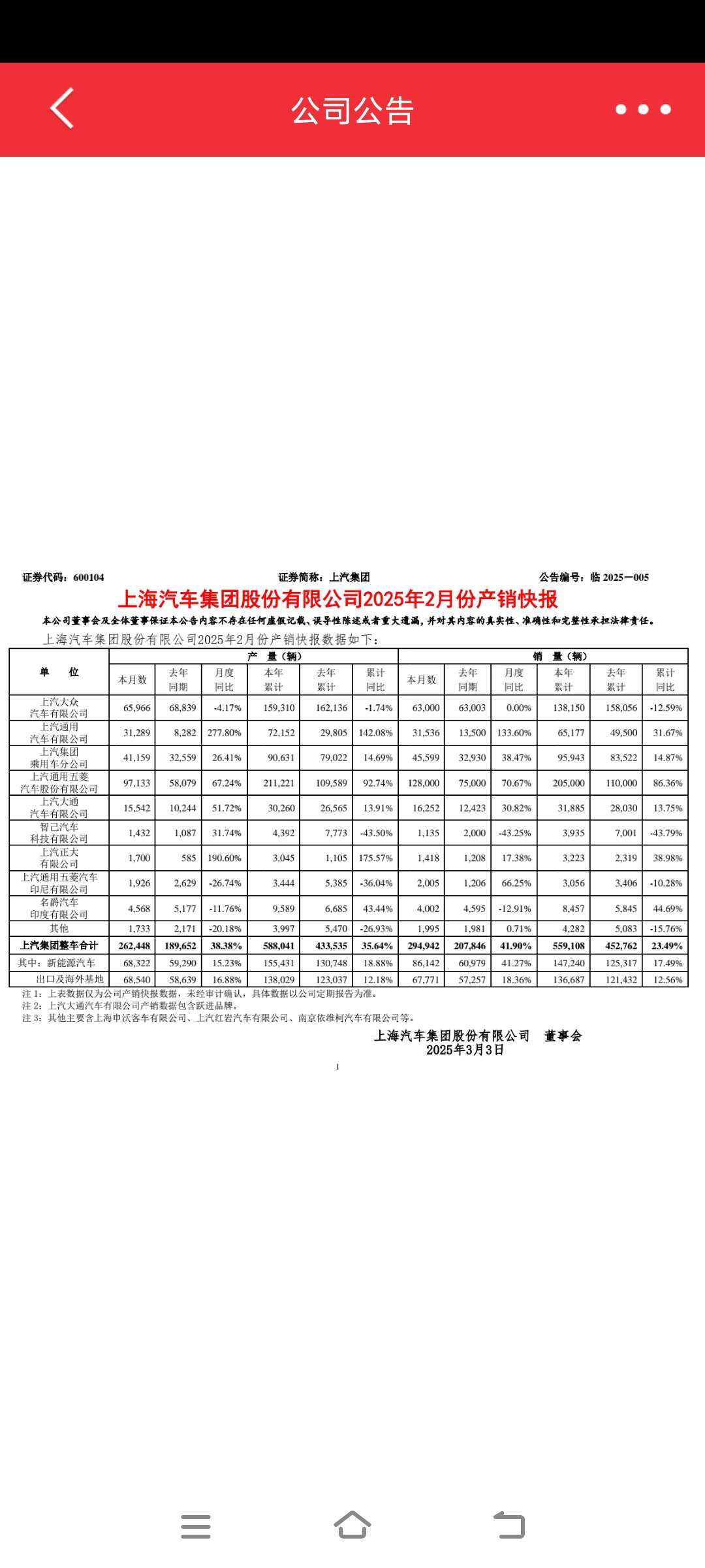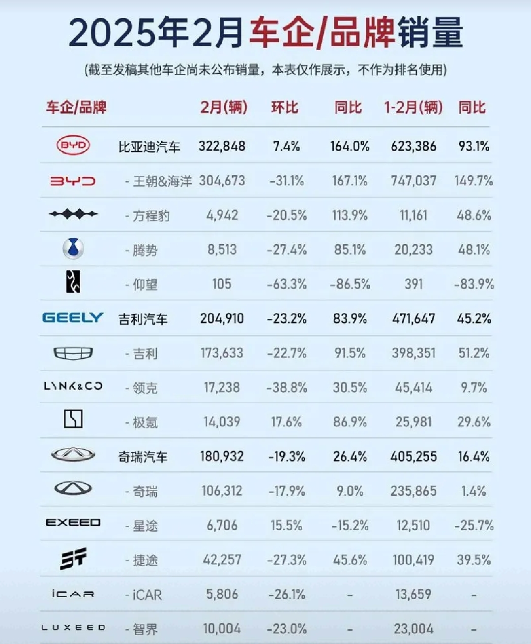 上汽今年1-2月销量55.9万辆,仅排在比亚迪之后位居第二。 长安汽车2月产销快